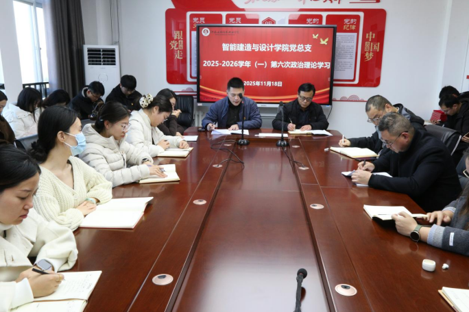 2025年11月18日下午,智能建造与设计学院于B417党建活动室开展政治理论学习。会议由党总支书记宁晓冬主持,院长李勇及全体教职工参加。