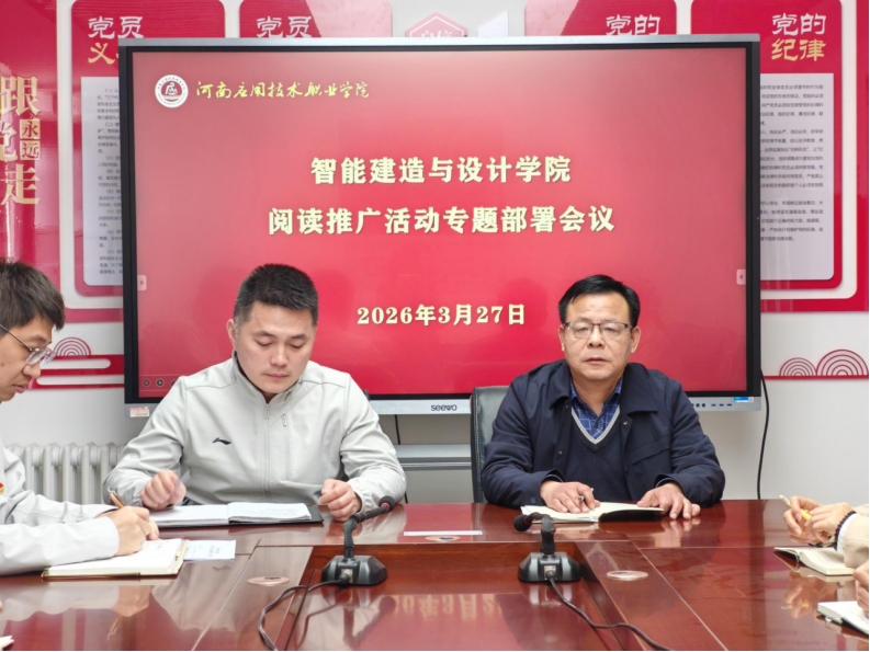 为深入贯彻落实《全民阅读促进条例》要求,推进书香校园建设。2026年3月27日,智能建造与设计学院召开2026年阅读推广活动专题部署会议。学院党总支书记宁晓冬、院长李勇、副书记张蓄金出席会议,全体教职工参加会议,会议由宁晓冬主持。