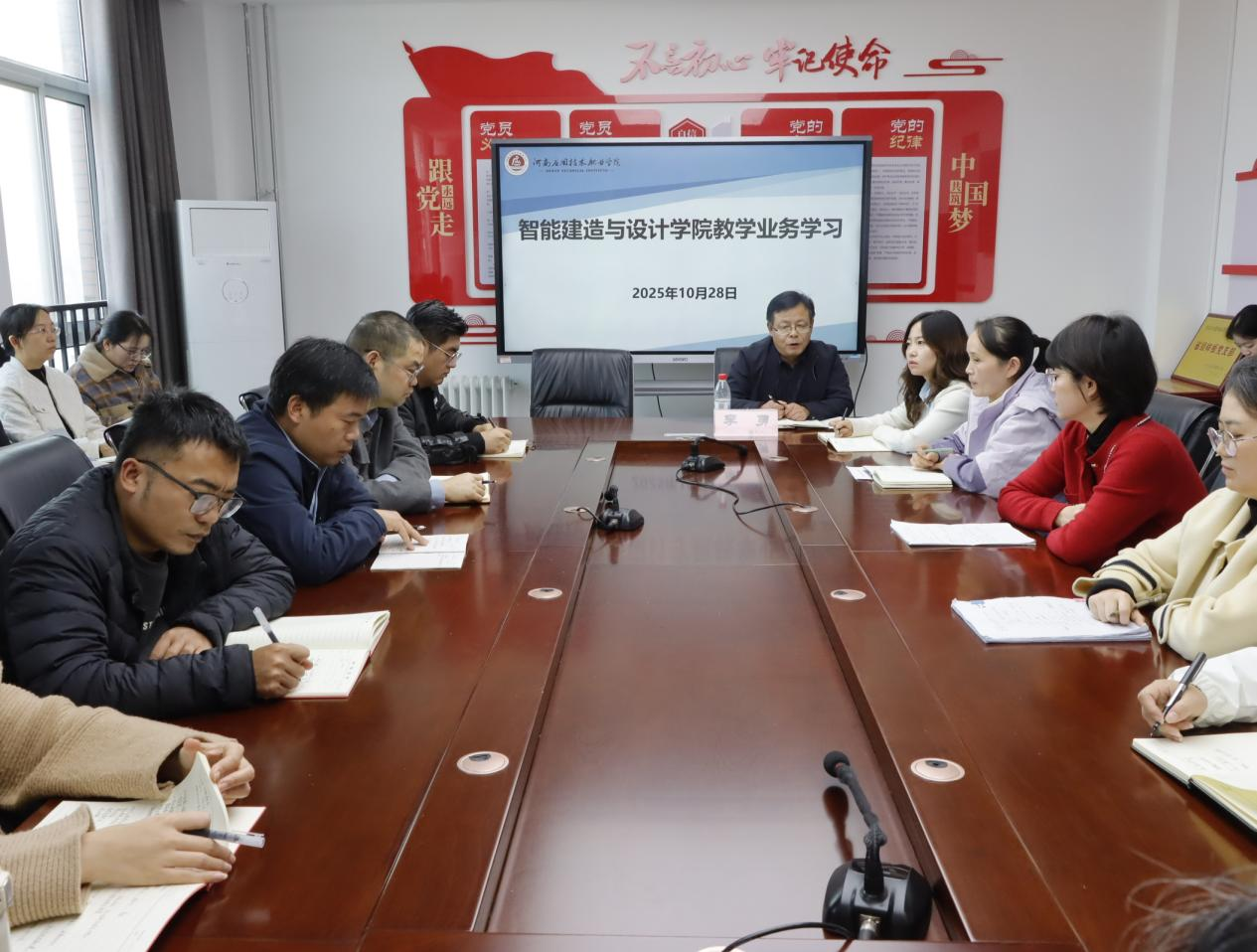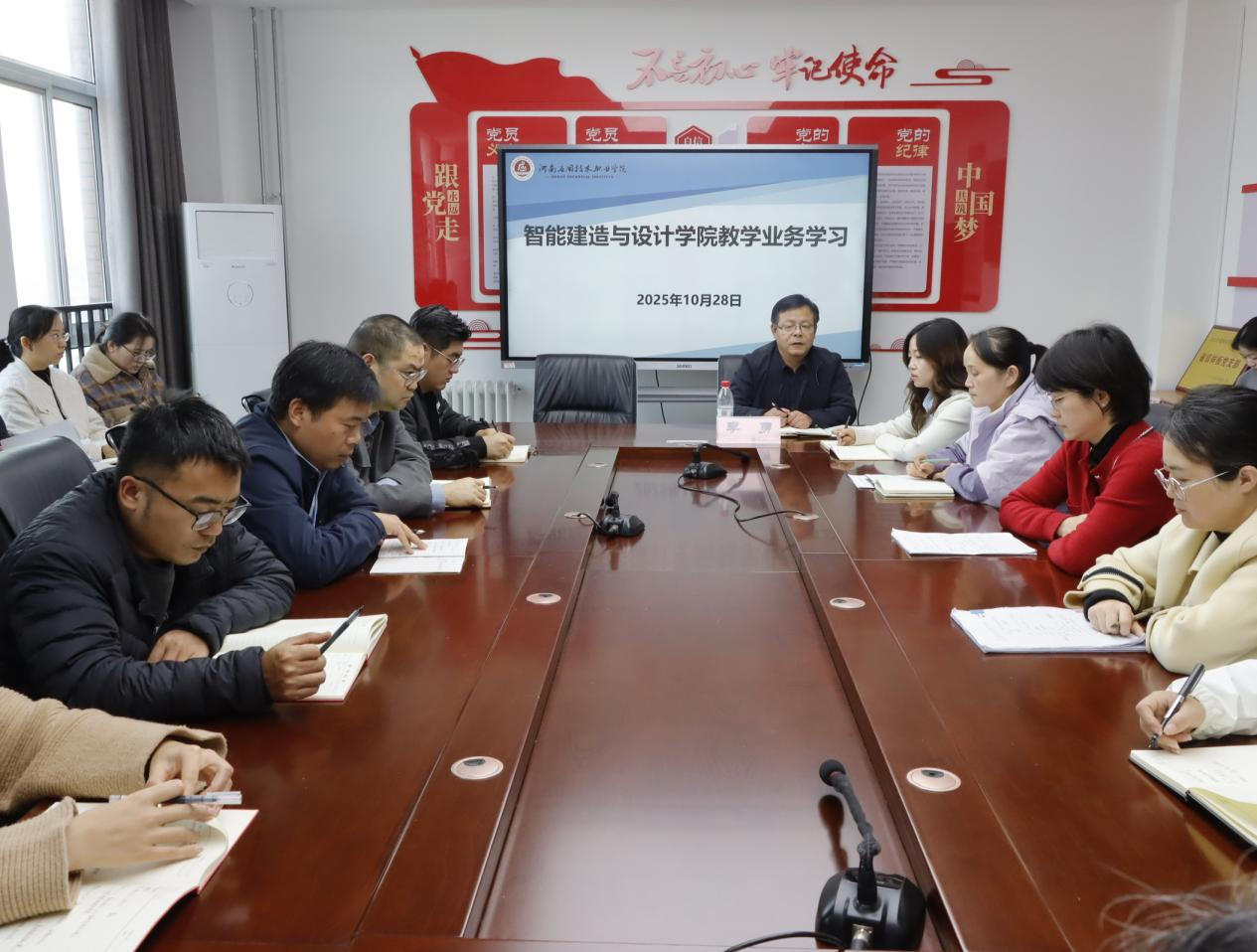 10月28日下午,智能建造与设计学院于开封校区行政楼417召开业务学习活动。院长李勇、党政办主任李慧杰、教学秘书苏玲敏及全体教师参加。会议由李勇主持。