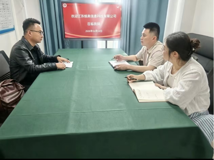 2026年4月14日,智能建造与设计学院与江苏恒奥信息科技有限公司在F214会议室召开校企合作座谈会。智能建造与设计学院党总支书记宁晓冬,学工办主任史真,及企业相关负责人参会。