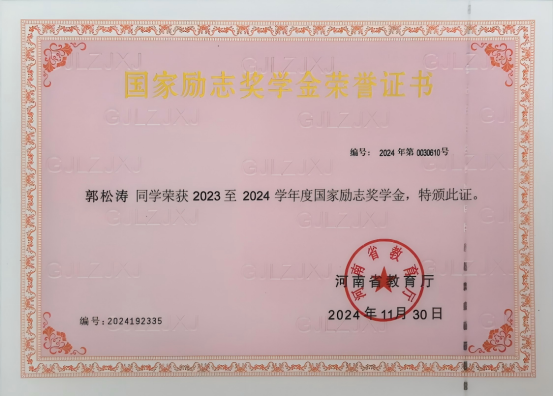 在国家资助政策的关怀下,该生在学业上不断精进,在工作中勇于担当,在公益里传递温暖,先后获得“国家励志奖学金”“省级三好学生”“优秀学生干部”“志愿服务证书”等数十项荣誉。这些荣誉是对他过去努力的肯定,更激励着他在未来继续以奋斗之姿,逐梦青春,书写更精彩的人生篇章!