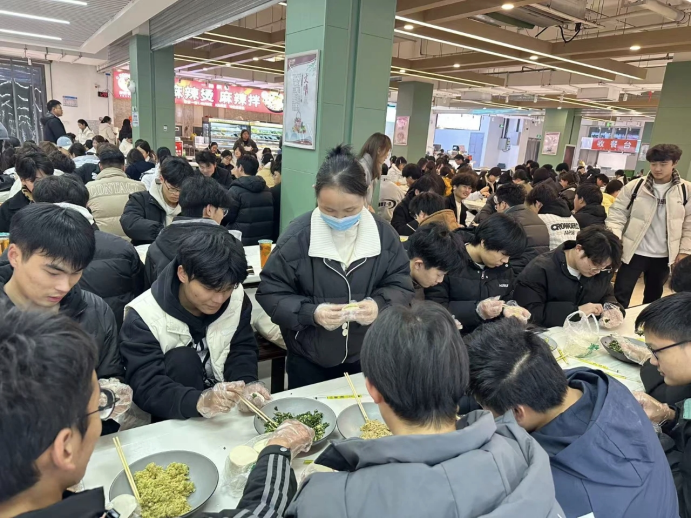 冬至,是二十四节气中兼具自然与人文内涵的重要节气,素有“冬至大如年”的说法。为传承中华优秀传统文化,丰富校园文化生活,让同学们在寒冬中感受集体温暖,智能建造与设计学院于冬至日组织学生在学校食堂开展了一场别开生面的包饺子活动。