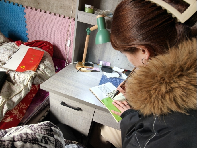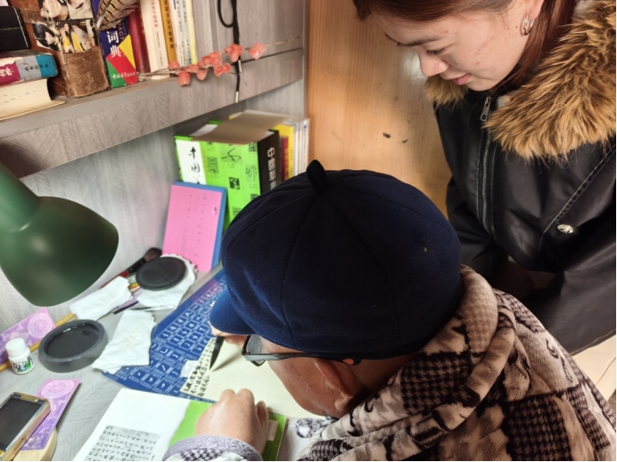 实践内容:在陪同老人练习毛笔字的志愿活动中,我协助长辈铺纸、研墨、执笔,耐心讲解基本笔画和书写要点。长辈兴致盎然,认真临摹,现场笔墨飘香、氛围温馨。我陪伴其交流书写心得,倾听过往故事,在一笔一画中感受传统文化的魅力。整个过程轻松愉悦,既丰富了其精神文化生活,也营造了尊老敬老、和谐温暖的良好氛围。
