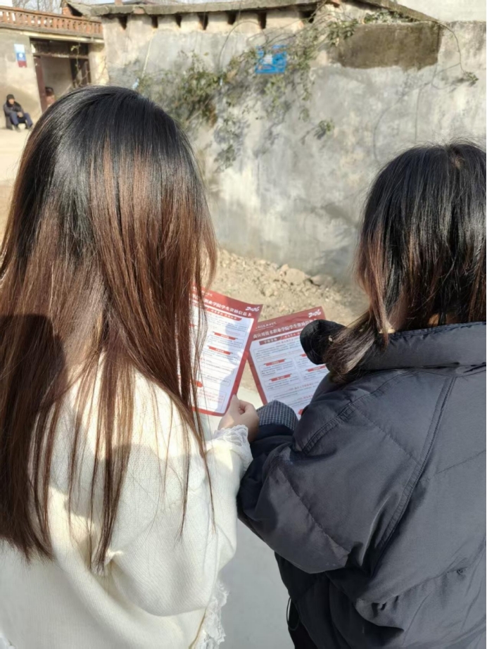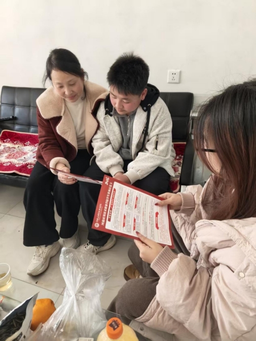 2026年2月10日,我回到古城乡开展资助宣传活动。以“不让一个学生因家庭经济困难而失学”为主题,面向村内有子女即将升学或正在就读的农户家庭。我紧扣《河南应用技术职业学院学生资助信息卡》,系统介绍了“奖、助、贷、免、勤、补、减”七位一体资助体系,重点讲解国家助学贷款、国家助学金、国家励志奖学金等核心政策;针对新生家庭,详细说明“绿色通道”申请流程,让他们明确“先入学、后缴费”的政策福利。同时,我结合自身在校受资助及勤工助学经历,为村民一对一解答贷款办理、助学金申请条件等疑问,有效消除了乡村家庭“上大学费用高”的顾虑,让他们真切感受到国家和学校的关怀,为困难学子顺利求学筑牢政策保障。