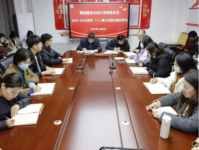 2025年12月2日,智能建造与设计学院于B417党建活动室开展政治理论学习。学院院长李勇、党总支副书记张蓄金及全体教职工参加学习。会议由张蓄金主持。