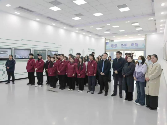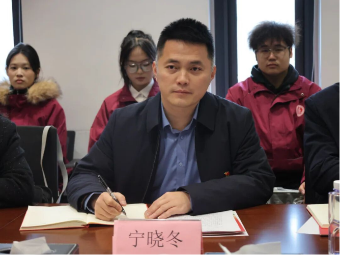 宁晓冬肯定了集团在接纳培养学生方面的社会责任感,赞扬了集团在传帮带方面的务实作风,详细介绍了学院总支在强化政治引领、夯实组织基础、推动“党建+专业”融合等方面的积极探索与实践成效。