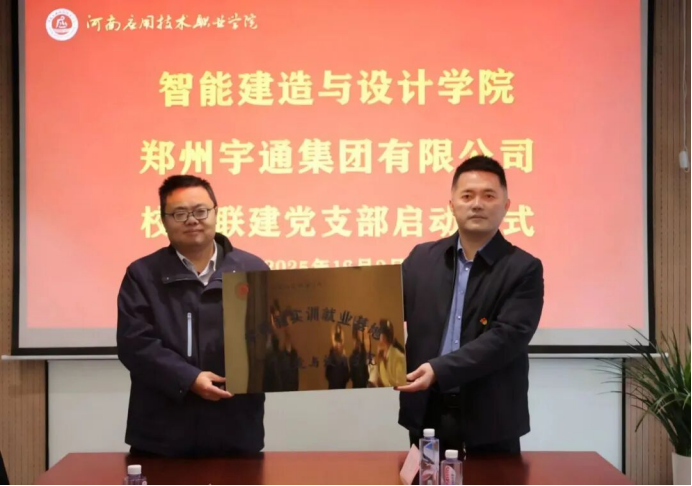 学院在宇通集团实习学生代表分享了实习体会。双方党组织代表正式签订《党建联建协议书》,共同为“现代学徒制实训就业基地”和“党建共建驻企工作站”揭牌。双方将本着“资源共享、优势互补、深度融合、协同发展、互利共赢”的原则,共同为培养高技能人才、服务区域经济社会发展贡献力量。